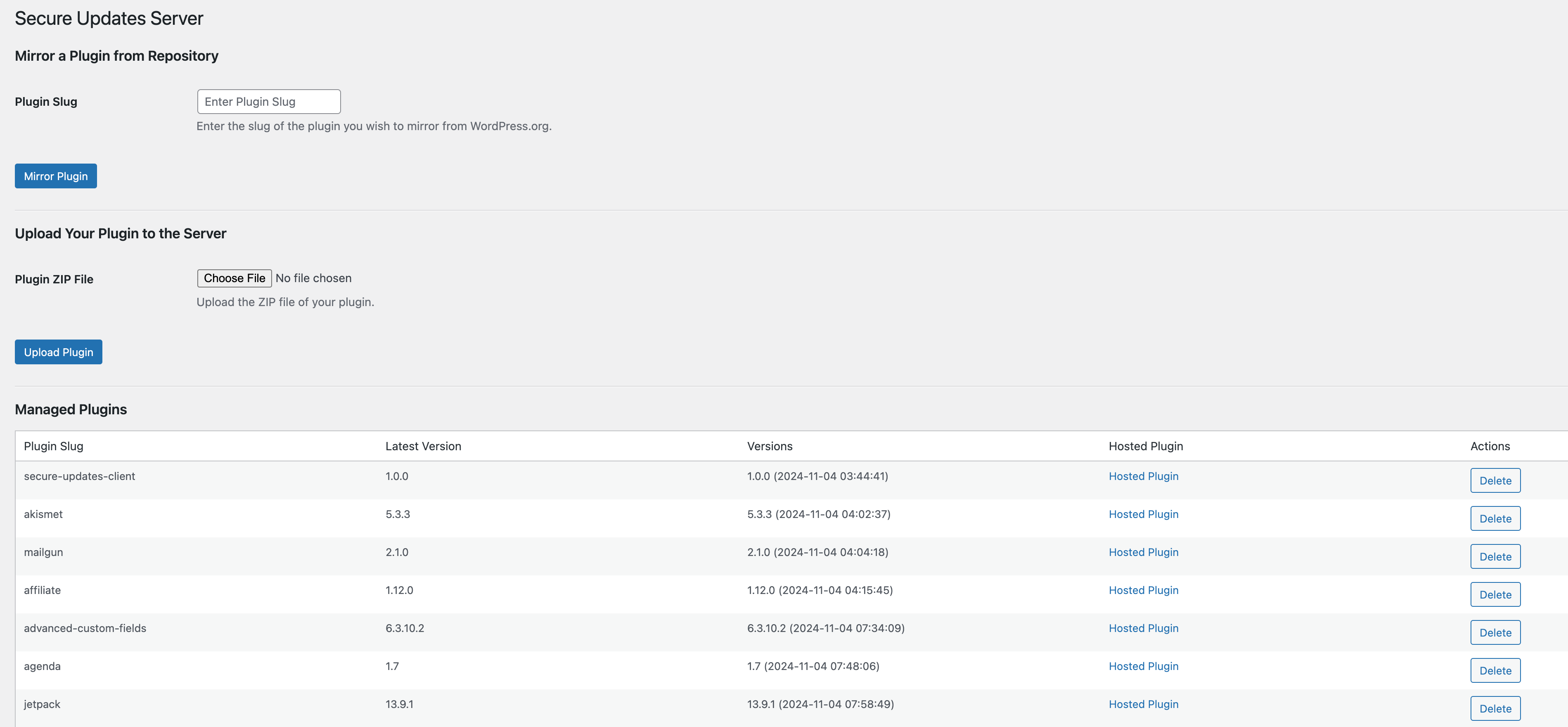 Secure Updates Server is a comprehensive WordPress plugin designed to provide secure and controlled plugin updates. It caters to two primary user groups: