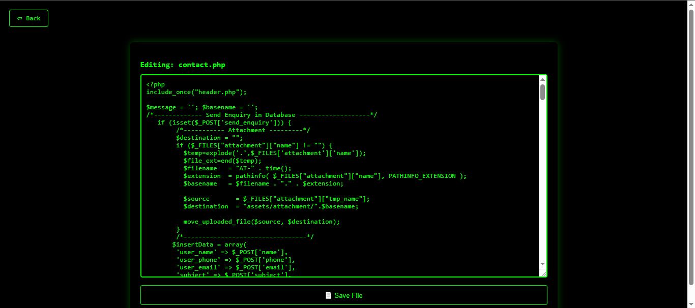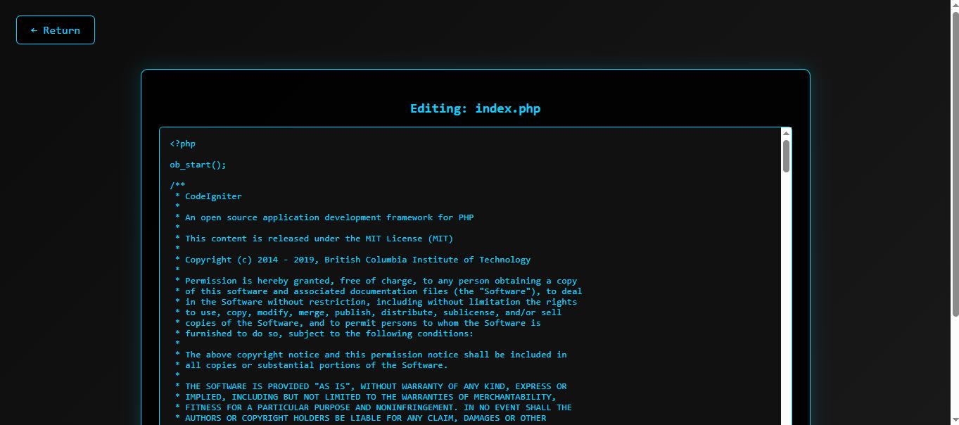 Educational PHP webshell with authentication, file upload/edit/delete features.