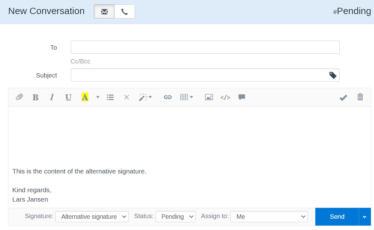 • You can select the desired signature per conversation.