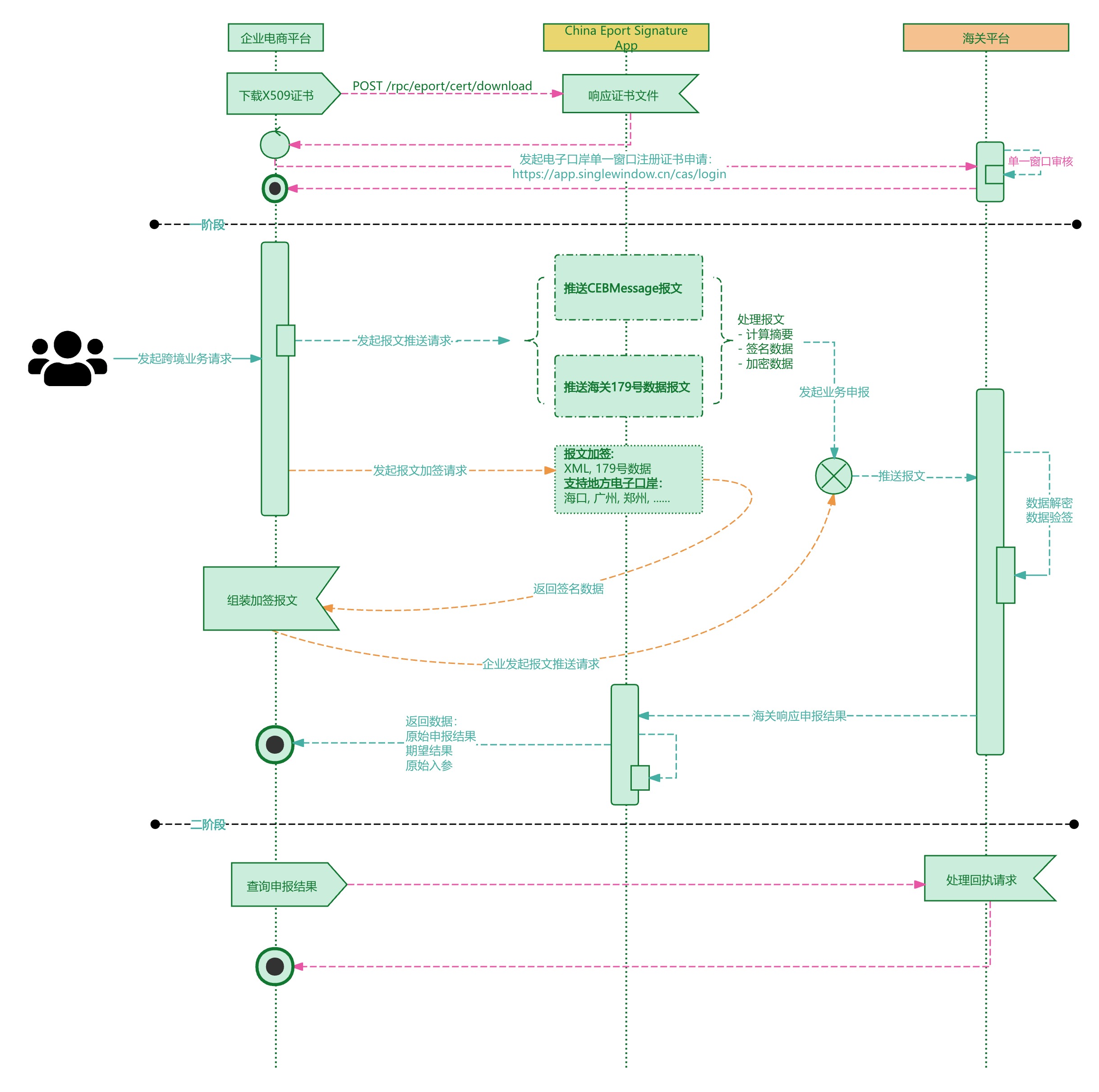 After nearly two years of open-source code maintenance and exploration, we have developed an all-in-one solution offering free, open and universal access for a wide range of businesses. The aim is to digitally sign and forward XML messages to the General Administration of Customs via China E-Port (HaiKou Customs), facilitating efficient cross-border e-commerce and import-export business.